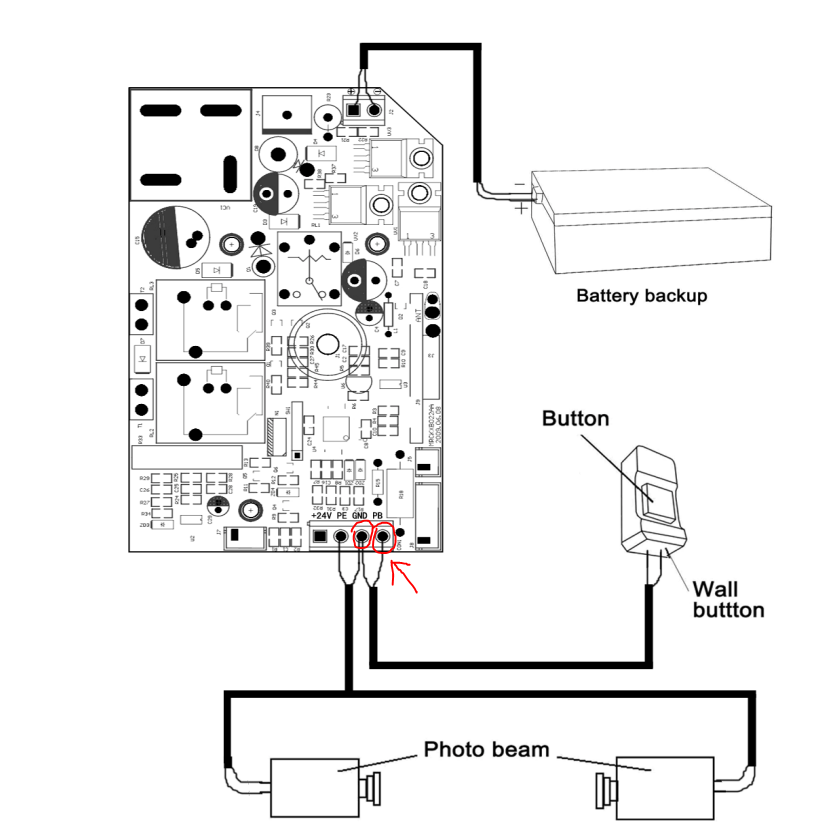 Priklop modula za vrata se ozvede direktno na motorju po spodnji shemi: