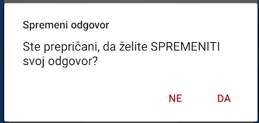 Ob kliku na SPREMENI ODGOVOR se pokaže spodnje potrditveno okno: