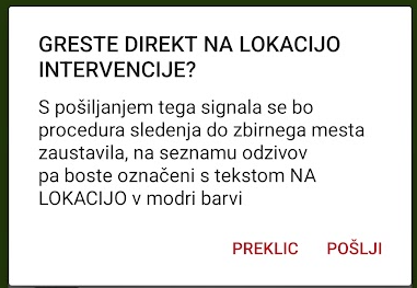 Ob podanem odgovoru PRIDEM ter pod-možnostjo DIREKTNO NA LOKACIJO se uporabniku prikažejo nadaljnje funkcije, kot so: