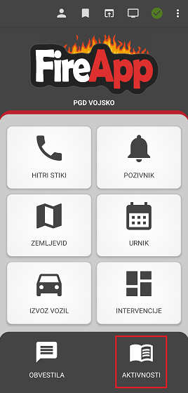 Modul "AKTIVNOSTI" na mobili aplikaciji je v prvi vrsti namenjen vnosu društevih aktivnosti v modul. Na voljo je vsem članom, tako da lahko vsak član sam vpisuje svoje ali skupinske aktivnosti.