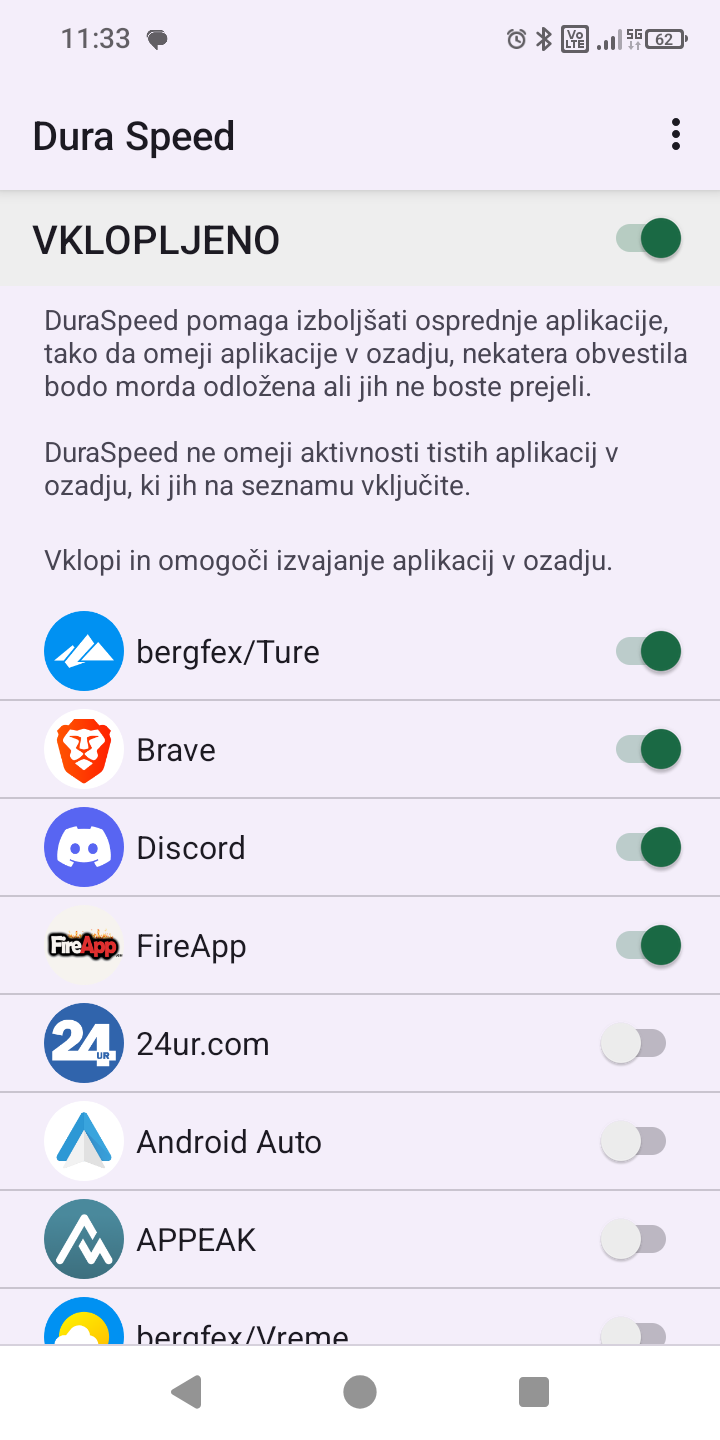 Pojdite v nastavitve telefona. Izberite DuraSpeed, ki se nahaja najverjetneje čisto na dnu. V nastavitvah DuraSpeed omogočite izvajanje FireApp v ozadju.