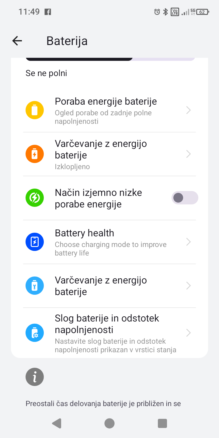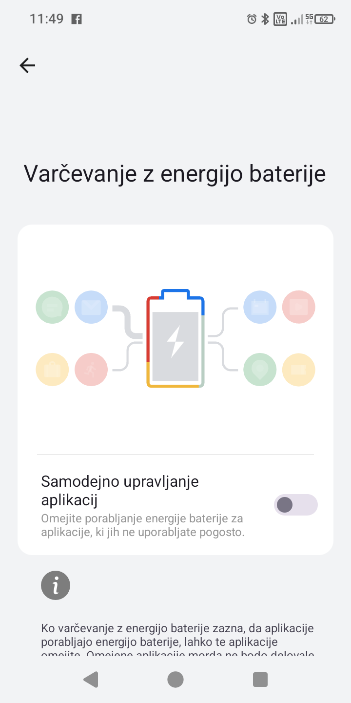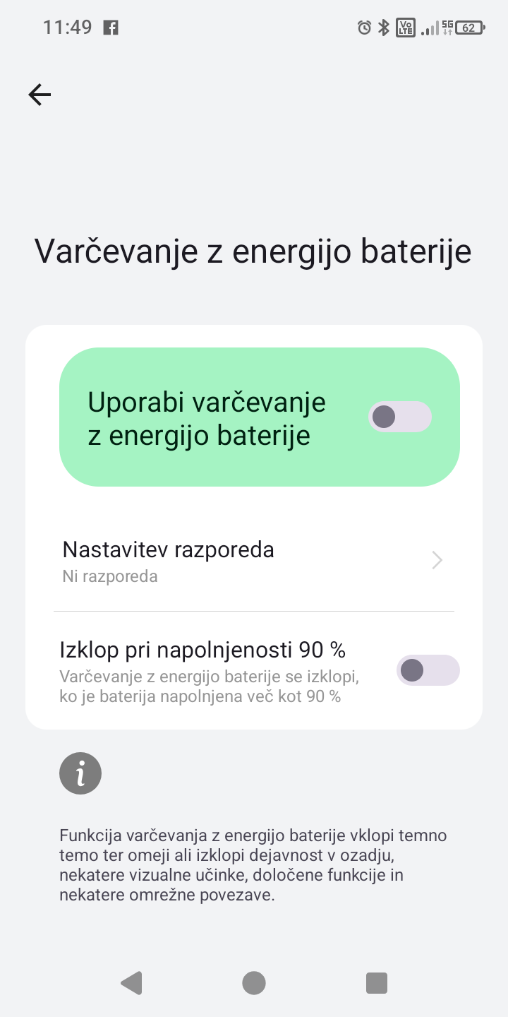 Izključitev varčevalnika z energijo v aplikaciji in pravilne nastavitve