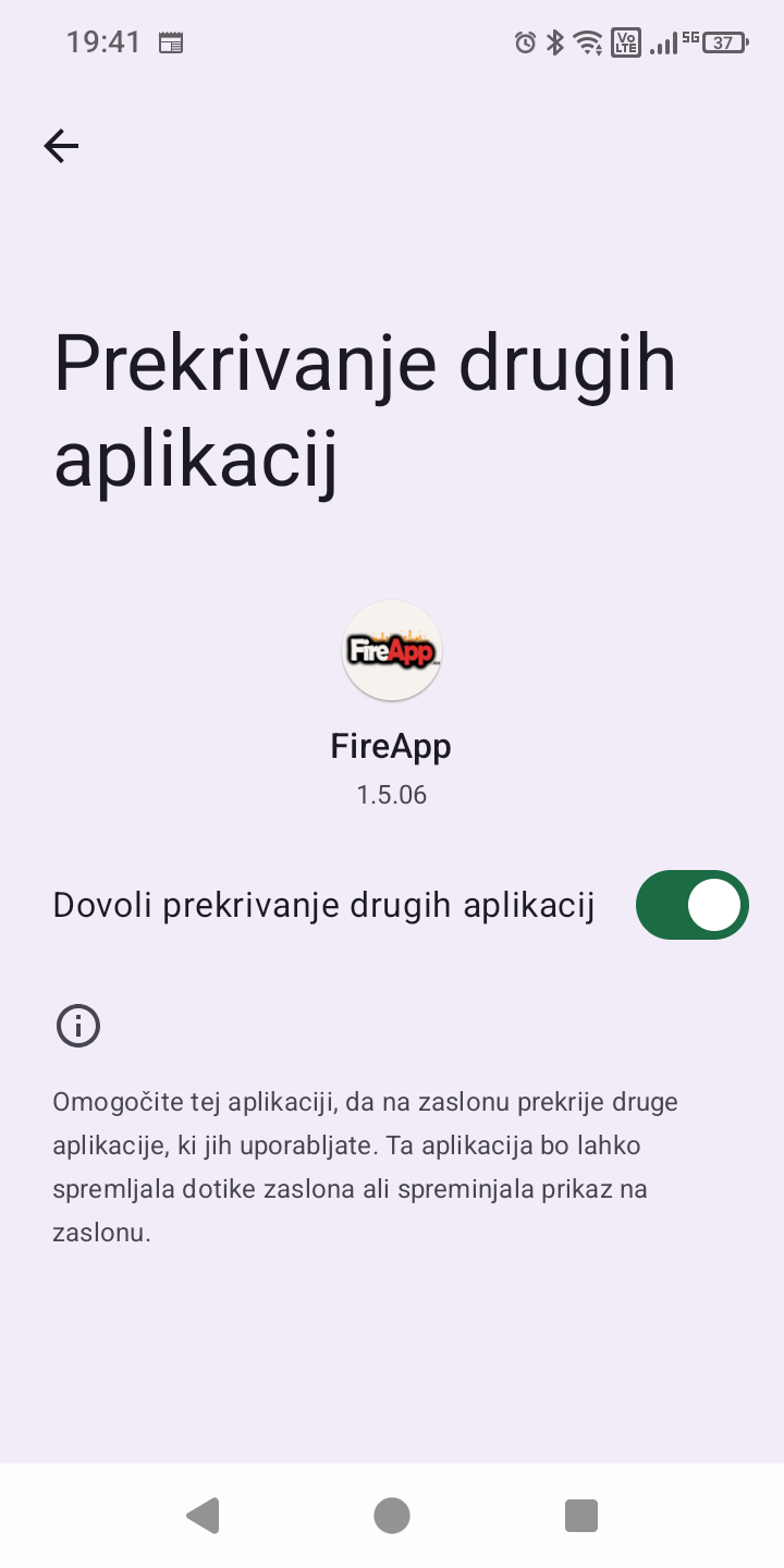 - V aplikaciji FireApp pojdite v pomožni meni (desno zgoraj 3 pikce) in izberite možnost sistemske nastavitve.