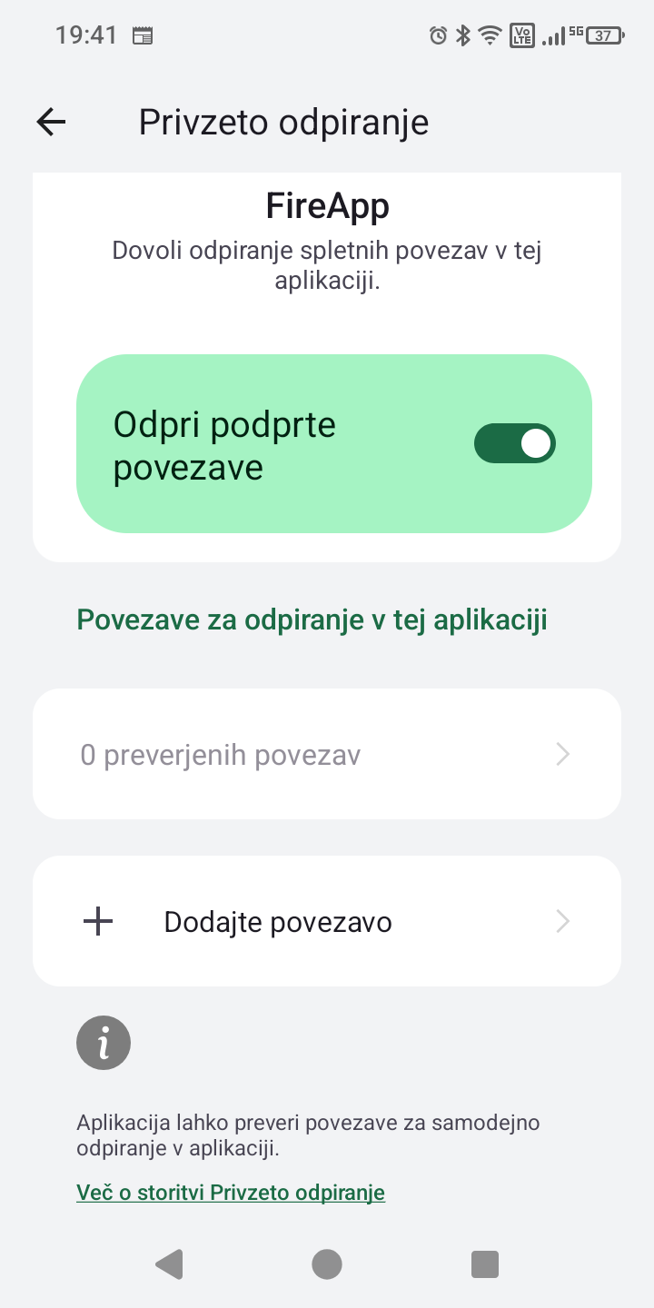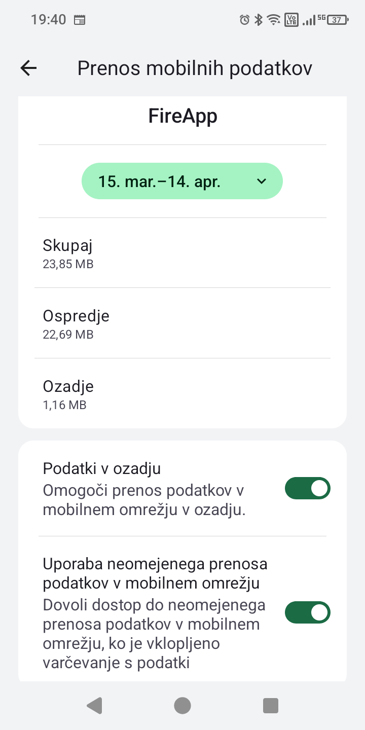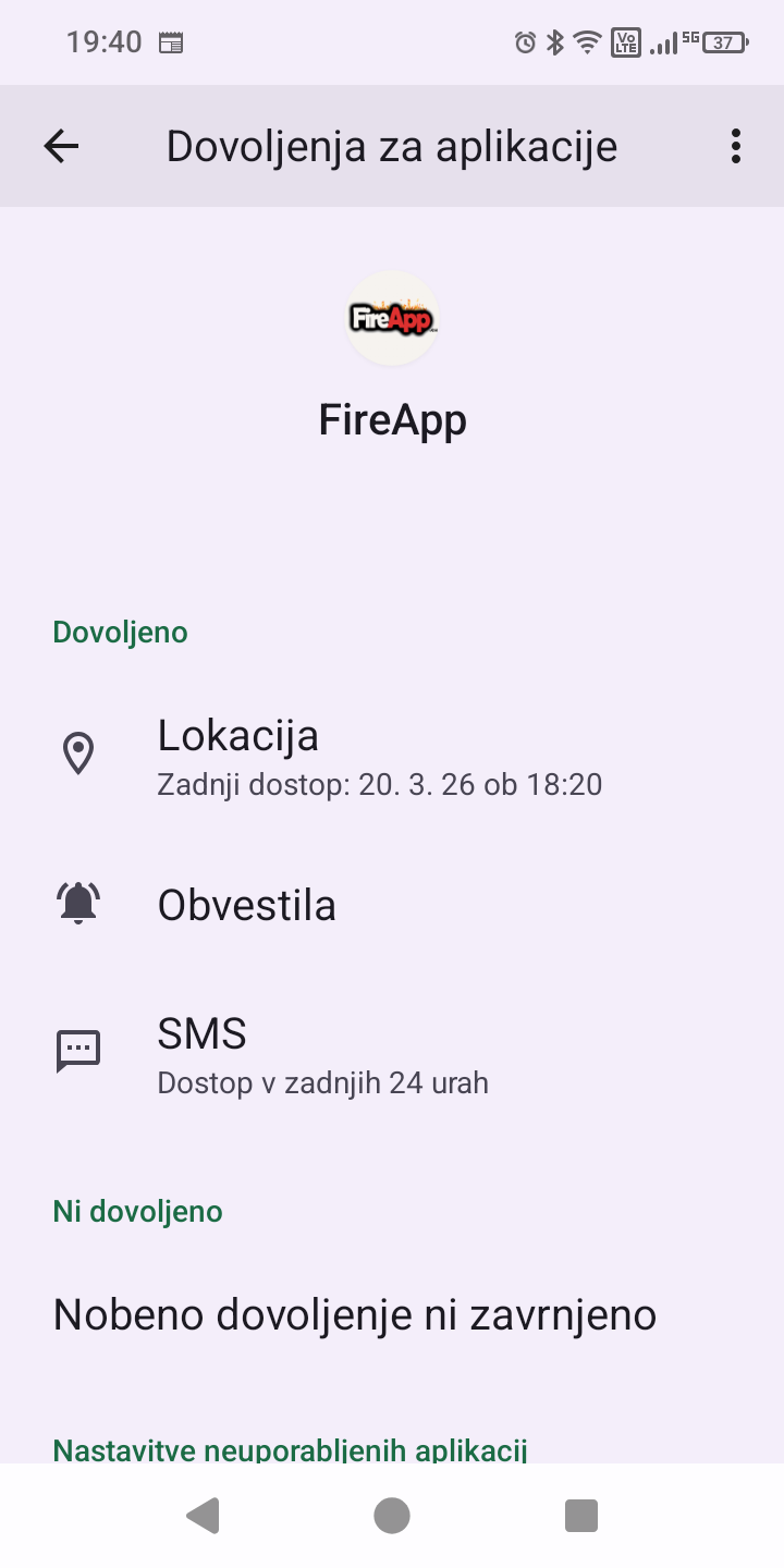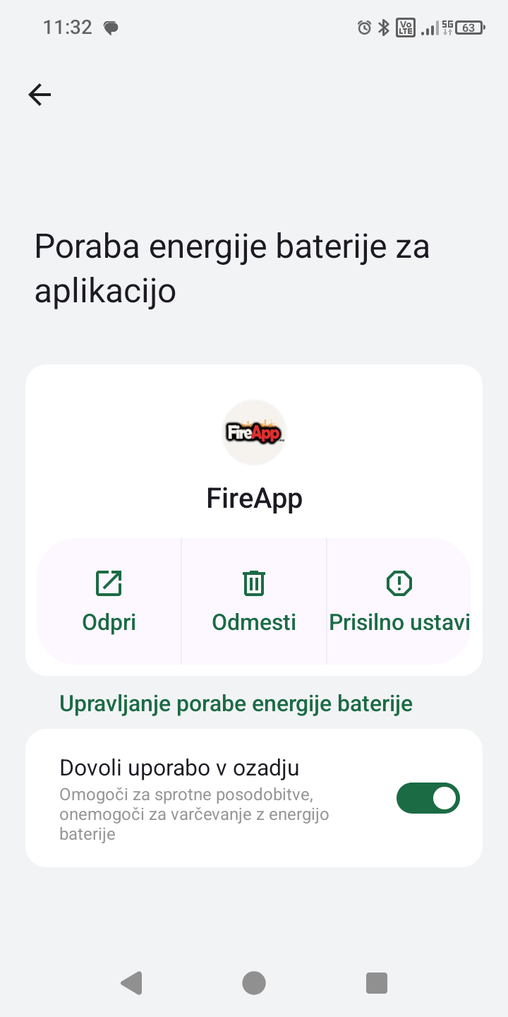 Prišli boste, do enega izmed spodnjih zaslonov, kjer optimizacijo baterije za FireApp nastavite na Ni optimizirano.