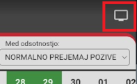 V kolikor pa ima uporabnik med odsotnostjo nastavljeno katero izmed nastavitev ''Samo obvesti o pozivu'' ali ''Popolnoma izključi pozive'' pa se na modulu pozivnik dodatno prikaže status takole: